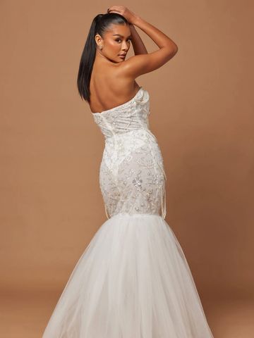 Cette robe bustier blanche au décolleté structuré sublime la silhouette avec raffinement. Son design élégant et ses finitions délicates en font une pièce idéale pour mariage, réception ou grande occasion. Une robe qui incarne pureté, sophistication et féminité intemporelle. 🤍✨